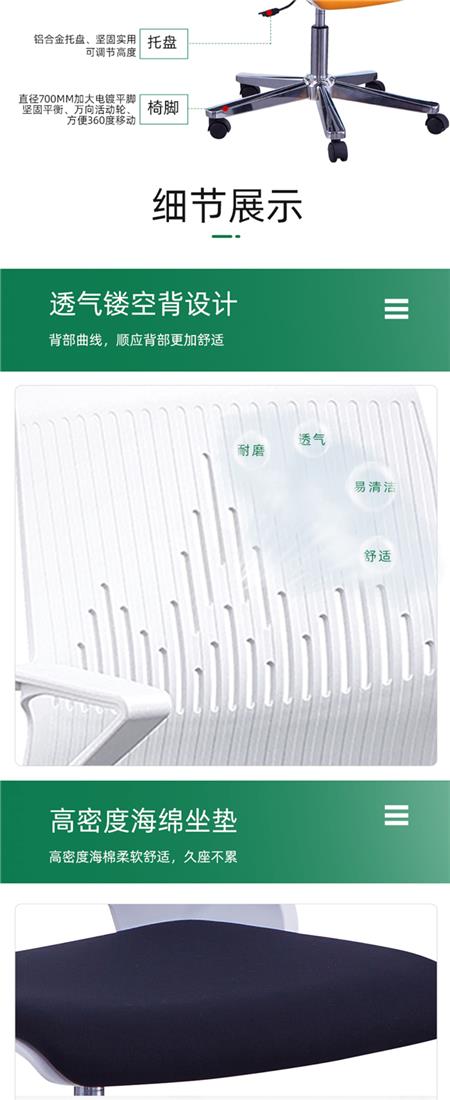 1、新款办公转椅 2、时尚简约,多色靠背可选 3、全新工程pp材料注塑 4、贴心呵护你的健康