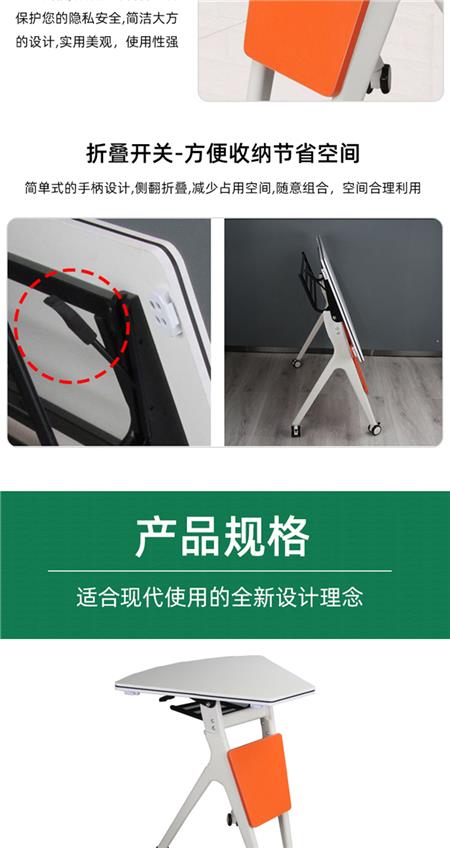 1、大学智慧教室课桌椅 2、可折叠,可拼接,结实耐用 3、时尚搭配您的培训室和会议室