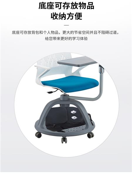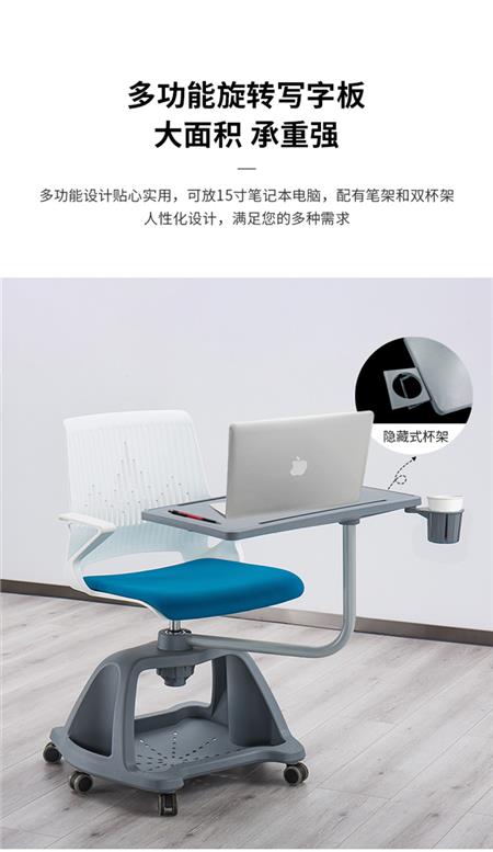1、360°可旋转写字板培训椅 2、写字板可移动到背后,高端大气上档次 3、各大高校智慧教室,图书馆的共同选择