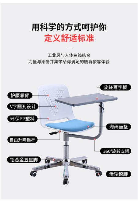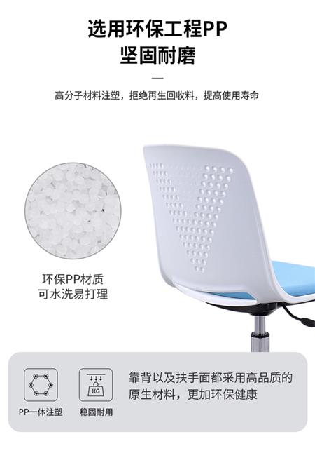 1、培训椅胶壳:材质采用全新PP工程一体成型,环保不褪色,质地轻、抗裂性强。