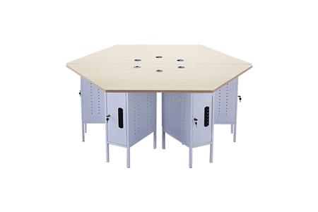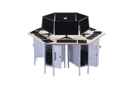 1、学校实训教室六边形电脑桌 2、带隐藏电脑主机架,材质结实耐用 3、适用于实训教室、机房教室、AI教室等多种场景